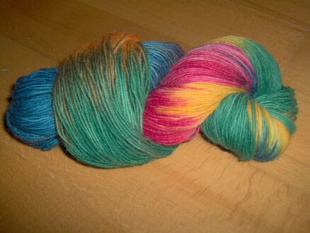 In the meantime I also saw handdyed yarn by using Kool Aid. I have two skeins left and I will try this as well. After my succesful dying I bought a lot of egg-colours for more dyeings.
