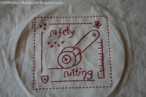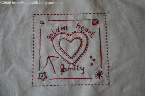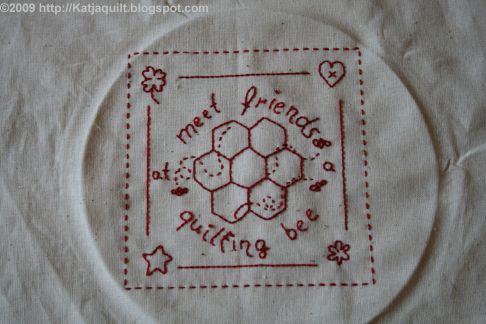In the meanwhile I finished three more Redworkblocks of Bea's 2008 BOM Quilter's blessings.